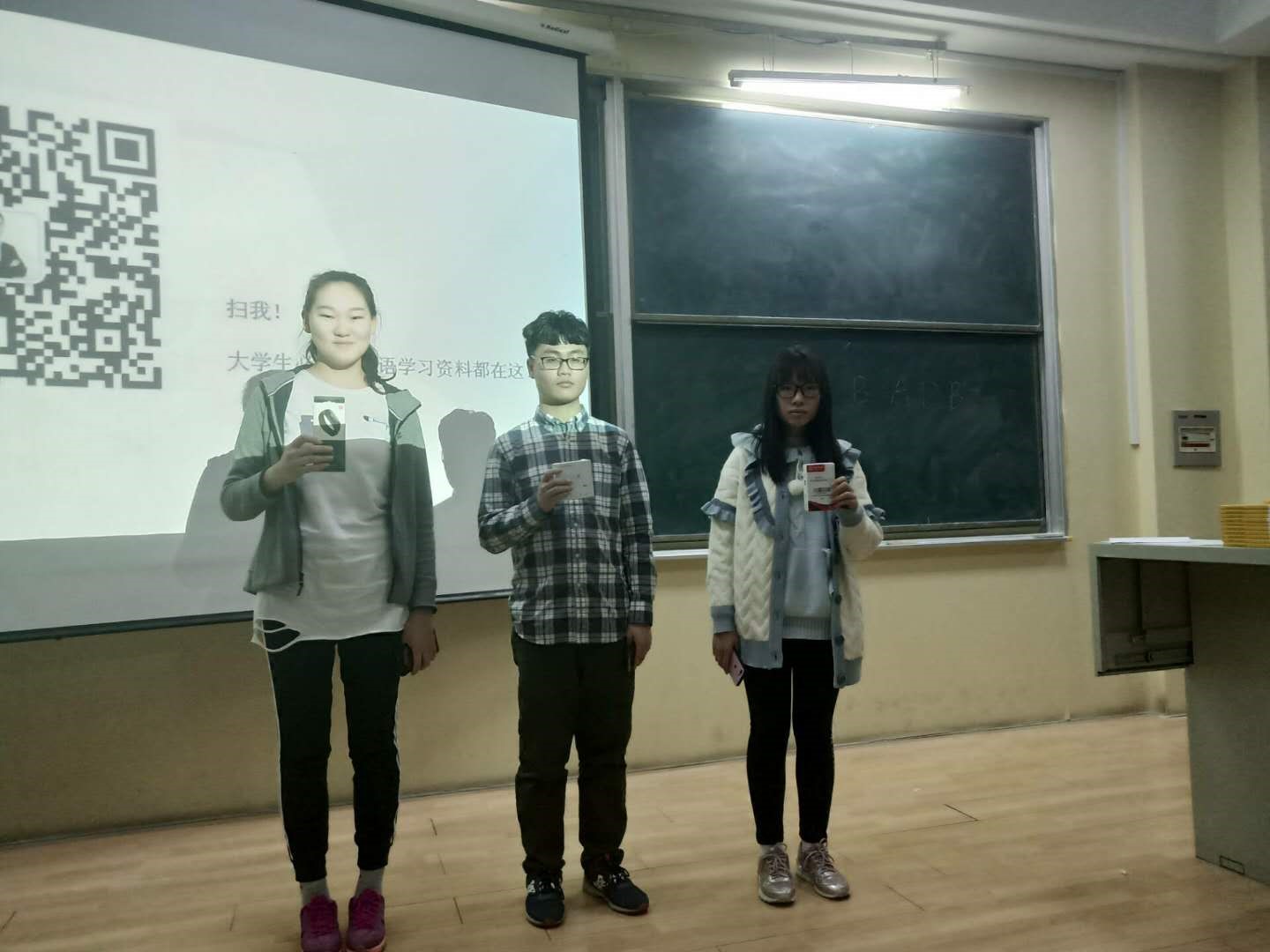 此次活动主要包括三部分。第一部分是现场讲座,邀请2018年推免清华大学马克思主义公司硕士研究生周金霖学长及2017年推免吉大生命科学公司硕士严就是张佳欣学姐主讲,从听力,阅读,翻译,写作,传统文化等方面为考生仔细讲解提高英语素质的方法和应试技巧,并且针对不同的同学提出了不同的意见。现场互动频繁,气氛十分热烈。第二部分为抽奖环节,奖品包括小米运动手环、蓝牙耳机等,社团采取抽奖小程序方法进行抽奖,保证抽奖的公平公正,同学们踊跃参与,最终有三位幸运儿获得奖品。第三部分为答疑环节,每位同学可与学长学姐零距离接触,与学长学姐探讨自己对英语学习的认知和困惑,来提高自己的英语素质。