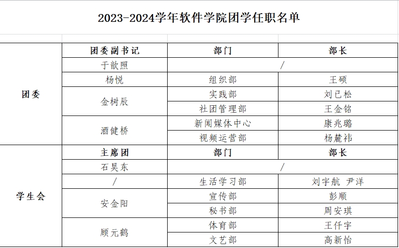 betway西汉姆联平台团学组织任职名单(2023.9)