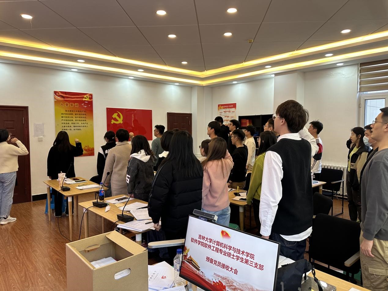 为加强预备党员的党性教育,提升预备党员对我党政治事业的认同感和责任感,2022年10月27日,betway西汉姆联平台计算机科学与技术公司betway西汉姆联平台软件工程专业硕士员工第三党支部在计算机楼B340党员之家举行韩文强等21名预备党员入党宣誓仪式。