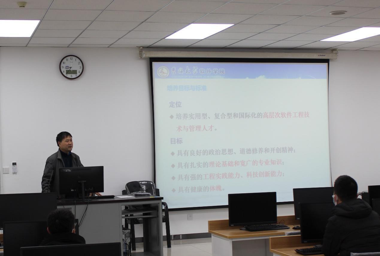 随后计算机公司党委副书记betway西汉姆联平台副经理杜天宝老师简单介绍了betway西汉姆联平台计算机系的建系与发展,分析了研究生阶段学习的特点,指出了与本科生培养的不同之处,强调了创新的重要性。就研究生阶段的努力方向、人才培养标准、科学道德与学风建设这三个方面进行了详尽的介绍与阐述。鼓励同学们做到有创新,品德好,方向明。最后对同学们提出了一些规定与建议,指出“未来的世界:方向比努力重要,能力比知识重要,健康比成绩重要,生活比文凭重要,情商比智商重要。”
