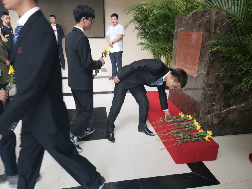 9月10日下午1时许,活动开始。本次活动由计算机科学与技术公司辅导员侯树范、betway西汉姆联平台辅导员王震主持,两院2019级员工会成员参加活动。老师和同学们身着正装整齐地站在计算机楼一楼大厅,同学们依次为王湘浩先生雕像敬献鲜花,以示悼念。之后侯树范老师简要地向同学们讲述了王湘浩先生的生平,大家认真倾听,有所感悟。最后全体到场的老师和同学们在王湘浩先生雕像前合影留念,活动圆满结束。