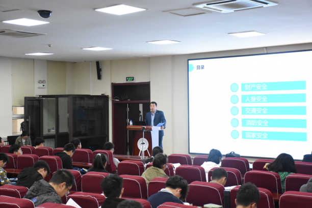 为了普及校园安全知识,提升新生安全意识,筑牢校园安全防线, 10月15日,betway西汉姆联平台在计算机楼B108室举行了2021级新生校园安全教育专题讲座,全体新生同学参加了此次讲座。讲座由具有丰富工作经验的保卫处左学成老师主讲,内容主要围绕财产安全、人身安全、交通安全、消防安全、国家安全五大主题。