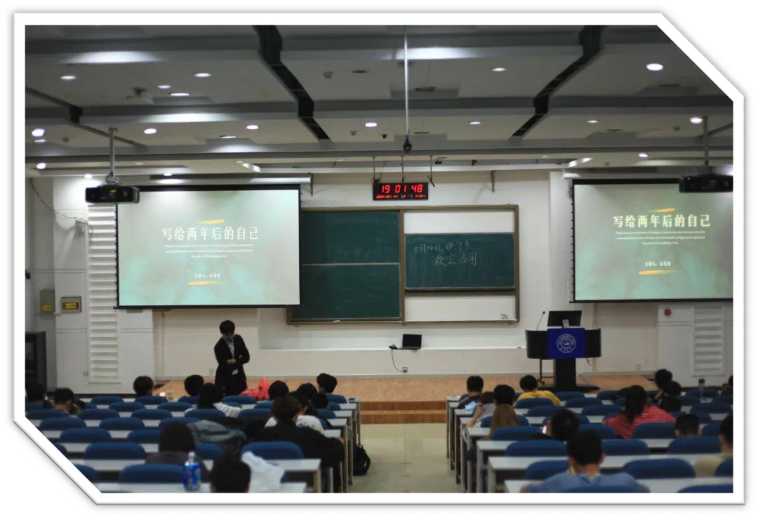 本次活动的消息一经发布,就吸引了许多同学积极踊跃地报名,报名总人数高达68人。活动当天,在员工干部的带领下,公司68名同学聚集在敬信教学楼十一阶梯教室,进行了一场别具一格的“写给两年后的自己一封信”活动,旨在鼓励同学们规划未来,激发个人成长潜力。在活动现场,主持人首先通过宣传和讲解活动背景和意义,吸引了众多同学们积极参与。接下来,同学们在轻松愉悦的氛围中开始给两年后的自己写信。大家认真思考、积极构思,将自己的思考和感悟融入到字里行间。有的同学写下了对未来的展望和计划,表达了对自己的期许和信心;有的同学则写下了对过去的回忆和感悟,表达了对自己的认识和成长。在信件写完后,同学们纷纷将信件放入特制的“时光胶囊”中,由秘书部精心保管。