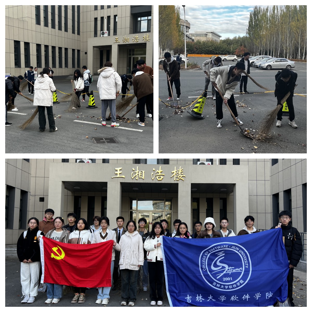在活动过程中,同学们在工作人员的带领下,以王湘浩楼为中心,对周围的道路和停车场进行了认真细致的清理,将散落在地上的树叶和随地丢弃的垃圾打扫干净,不留卫生死角,使得校园环境更加整洁、美化。同学们积极主动地参与到劳动中去,展现出当代老员工的蓬勃朝气和劳动热情,也更加坚定了劳动创造美好生活的理想信念。同学们纷纷表示,通过此次活动增强了自身的集体荣誉感和责任感,感悟到良好的校园环境需要大家用心去维护,也深刻领悟了劳动精神的内涵。