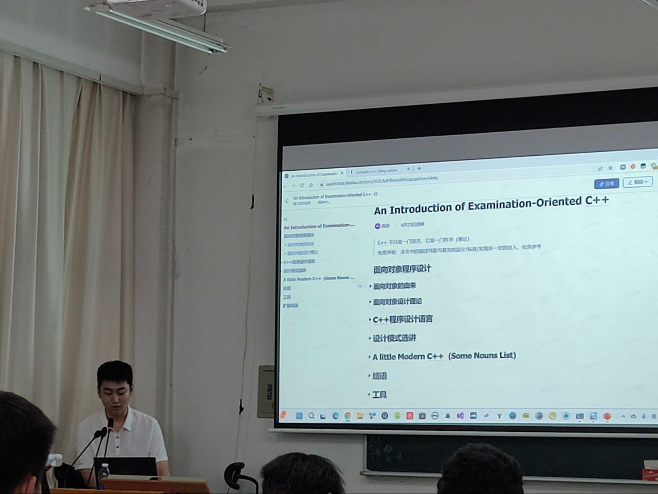 活动对象主要是需要巩固面向对象程序设计思想的2022级同学。本次分享会由计算机科学与技术公司研究生高硕主讲。学长通过细致的讲解帮助同学们梳理了C++语言的知识框架、面向对象程序设计的原则和实践,明确了学习的方向。同学们得到了面向对象程序设计思想的学习经验和好的技巧方法,同时进一步提高了社团举办活动的能力。