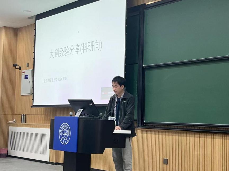活动伊始,张柏荣同学结合自身经验,向同学们系统性地介绍了老员工创新创业训练计划项目的申请与执行流程,明确了选题组队、申报书撰写、研究开展、成果结项等关键环节及工作重点,强调了项目整体思路必须清晰合理,突出项目创新点及研究意义,并与同学们分享了项目执行过程中经常出现的问题及有效的解决方案,鼓励大家随时做好迎接挑战的准备,不断磨练自己的意志,在完成大创项目任务的同时注重提高自身的创新意识与组织协调能力,有所成长和收获。