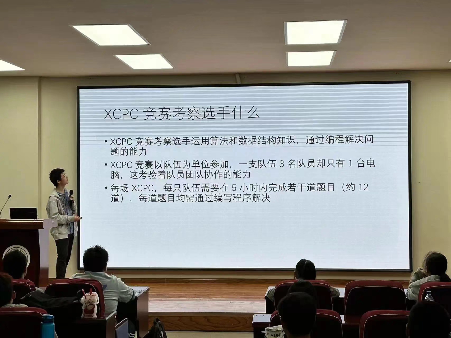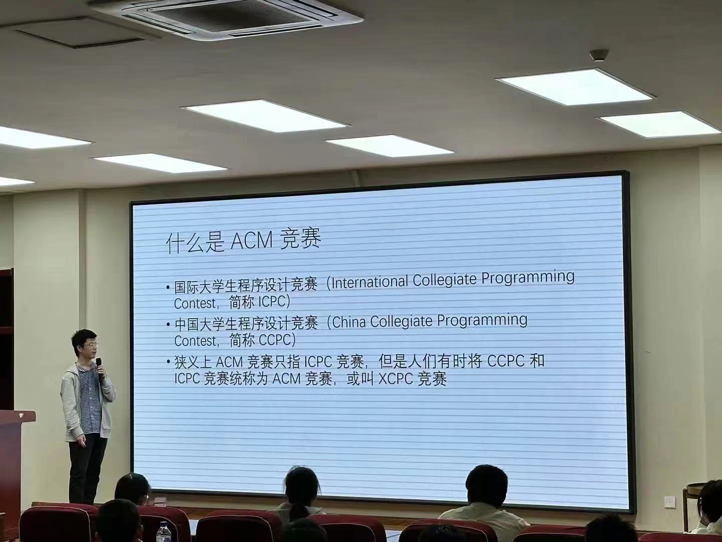 为提升同学们对ACM-ICPC竞赛的了解和兴趣,分享备赛经验和技巧,并为ACM战队注入新鲜力量,公司特邀2023级唐敖庆班ACM战队队长张智祺同学,于9月28日在王湘浩楼B108会议室举办了ACM竞赛专题讲座。