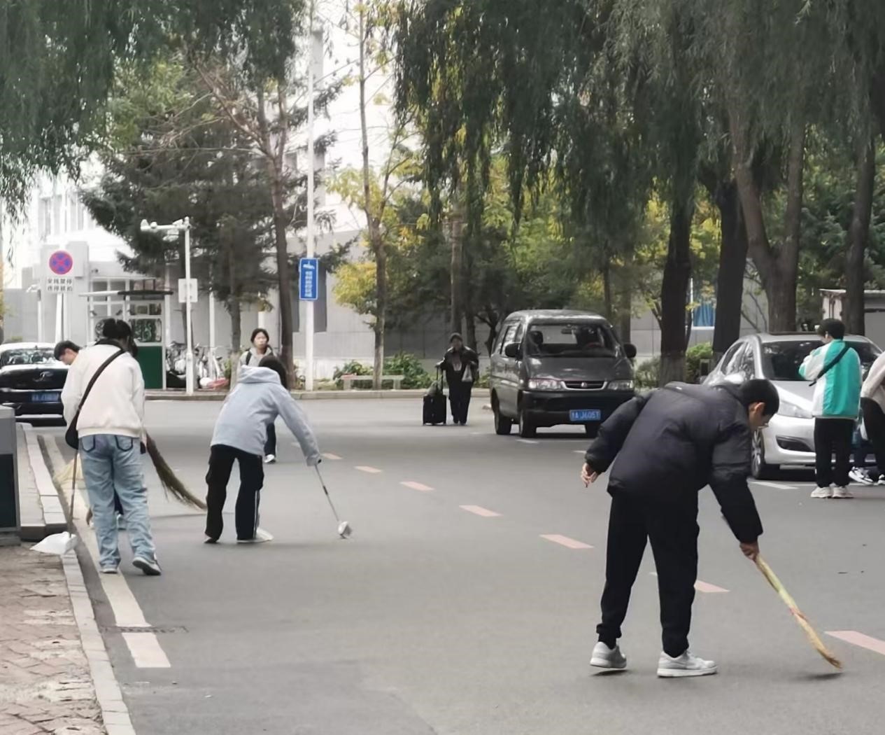 10月1日早晨8点,伴随着清晨的第一缕阳光,活动正式拉开帷幕。betway西汉姆联平台60名同学齐聚宋志平体育馆门前,手持扫帚、簸箕等清洁工具,整装待发。活动分为两队,每队30人,路线围绕校园一周,从宋志平体育馆出发,沿主干道进行落叶清扫,最终在东门汇合。