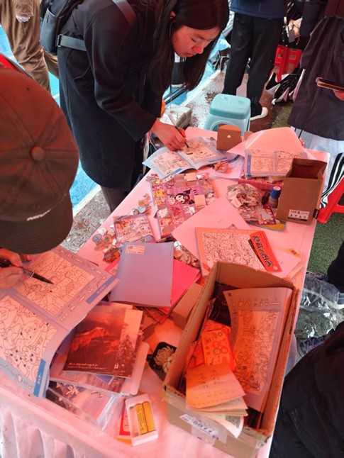 活动现场热闹非凡,气氛热烈。“写下你心中的志愿活动”环节,同学们认真思考并写下自己心中最有意义的志愿活动,为社团组织活动提供建议,经统计,“校园清扫”“社区卫生清理”和“探访孤寡老人”等活动出现多次,社团会在此方向增加活动次数。“看图猜词语”和“隐藏的图画”等闯关游戏也备受青睐,大家纷纷驻足挑战,为在规定时间完成猜词和拼图任务,大家竭尽全力、紧张又兴奋。社团还收到同学们“增设志愿活动地点”“组织山区支教活动”等建议,为社团未来的发展提供了重要参考。