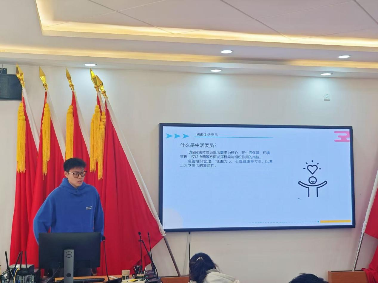培训中,23级班委们代表结合自身工作实践传经送宝。班长代表李禹铮、李依辰分别从职责规范与日常事务切入,李禹铮分享了沟通协作技巧及各项群聊工具的高效使用方法,李依辰则在讲解时提到,班长处理工作时需兼顾灵活性、公正性与温度,这是做好班级管理的关键;团支书代表郑杨围绕团关系转接、团员发展等核心工作,强调支部建设与班级凝聚力提升的重要性,呼吁新任团支书增强同学们的集体意识;学习委员代表逄炅详细介绍岗位职责,针对工作常见问题给出解决方案,助力新任学委打造勤学善思的班级学风;生活委员代表曾翰、赵子毅则聚焦班级日常关怀与活动后勤保障,强调细致耐心的工作态度的重要性,建议大家加强与同学们的沟通衔接以发挥桥梁纽带作用。