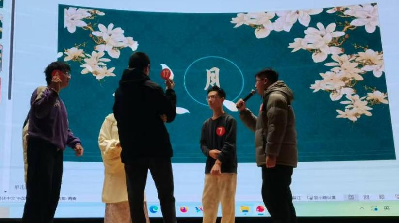 当日晚19点整,第六届饮雪诗词大会正式拉开帷幕。活动伊始,笛箫协会带来的三人竹笛合奏精彩纷呈,悠扬的旋律瞬间点燃现场气氛。随后,诗词大赛正式展开,比赛环节设置“句句惊心”“心有灵犀”“百转千回”三个篇章,层层递进、趣味与难度并存。参赛选手们斗志昂扬、积淀深厚,展现了其令人惊叹的文气与才气,精彩表现赢得现场观众阵阵掌声。