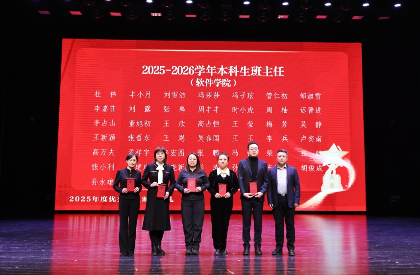 颁奖典礼在庄严的国歌声中拉开帷幕。首先由宫皓宇老师宣读2025-2026学年本科生班主任聘任名单及“2025年度优秀员工”获奖名单,并为班主任代表颁发聘书。