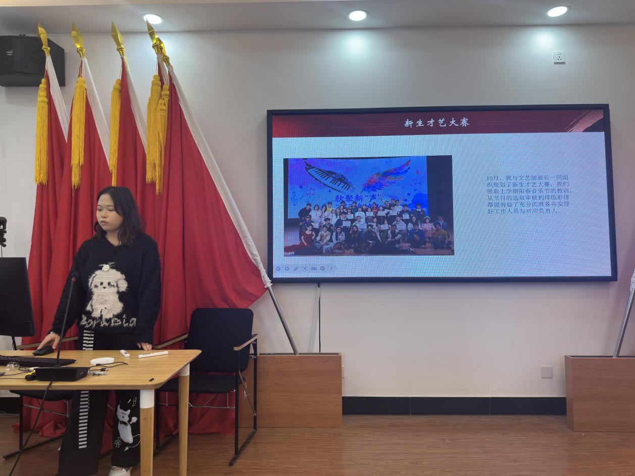 会议最后,戴嘉宜作总结发言。她充分肯定各部门在员工工作中的显著成效,同时指出仍存在的细节疏漏。她勉励团学成员们常态化进行工作复盘,持续提升服务意识与业务能力,实现服务实效与自身进步的有机统一。