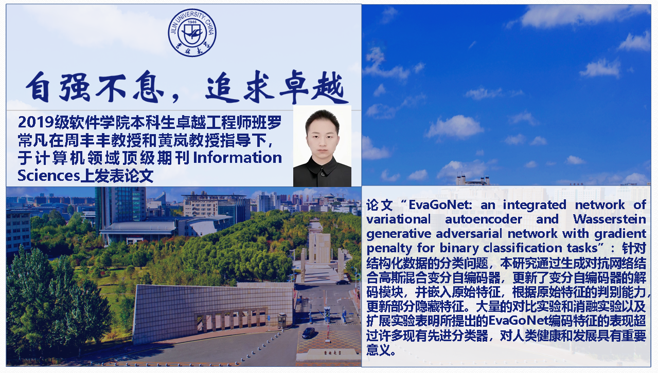 2019级卓班罗常凡和徐艺萍同学及其小组成员(betway西汉姆联平台本科生邵永康,计算机公司本科生王子涵、胡剑铮、袁佳蔚)在2020年暑假进入2019级卓班班主任周丰丰教授的健康信息实验室开展大数据算法研究。整个暑假以及后面的时间里,该小组都在周教授的指导下刻苦探索相关算法的改进工作,每周不少于三次的组会讨论,超过了不少研究生的科研刻苦程度。该研究成果经历了多个顶会的一轮评审,遗憾被拒。但是该小组成员坚持不懈,反复修改完善,最终见证了该篇论文“EvaGoNet: an integrated network of variational autoencoder and Wasserstein generative adversarial network with gradient penalty for binary classification tasks”在计算机领域顶级期刊Information Sciences上发表。该工作还受到黄岚教授的悉心指导。2019级卓班在全班同学的努力下,荣获betway西汉姆联平台2022年度十佳班级,本文第一作者罗常凡同学荣获betway西汉姆联平台2022年度自强自立老员工。多位毕业班同学也将前往顶尖高校继续深造,从事大数据算法方面的研究工作。