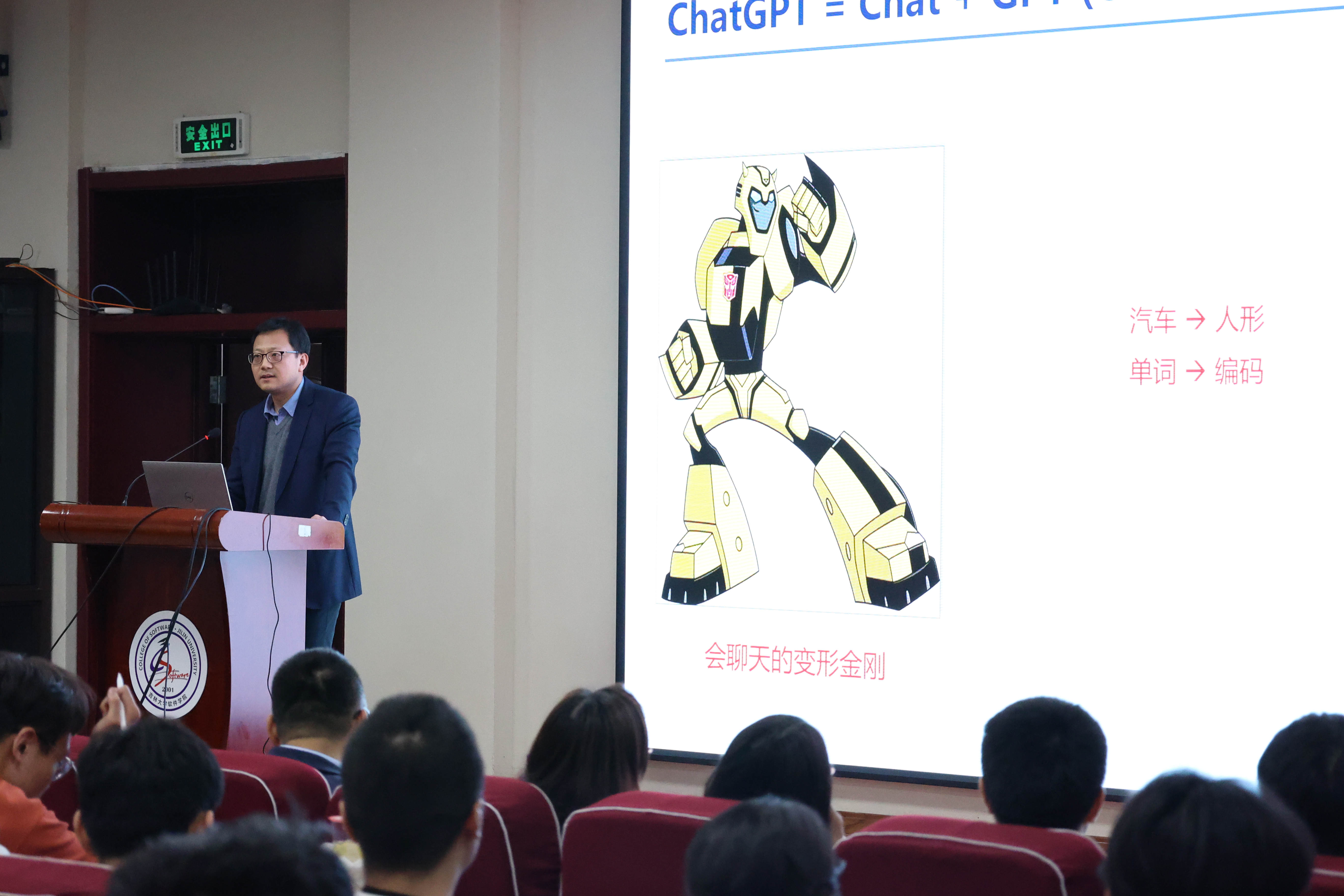 杨博经理从ChatGPT的背景、工作原理及前景和未来发展趋势等方面开展了相关的介绍。整个讲座既有科普知识的阐述,又从算法、数据、算力等方面来判断发展趋势,深入浅出的知识讲述、丰富生动的案例分享,引发同学们思考如何更好的去运用人工智能技术,服务于生活、学习和未来的工作。