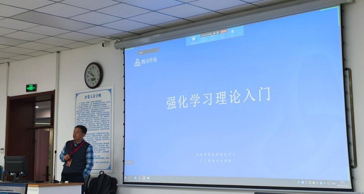 本次培训体系完整、注重实战,内容覆盖从强化学习基本原理、关键算法到深度强化学习框架与平台实训等核心模块。课程采用“讲授+实操”深度融合的模式,精心设置了模型实验、分组对抗与经验交流等多样化环节,致力于帮助到每一位参训教师全面掌握AI智能体的训练与优化全过程。在理论授课环节,betway西汉姆联平台计算机科学与技术公司吴春国教授,系统梳理了强化学习的完整知识谱系。betway西汉姆联平台计算机科学与技术公司王晓燕副教授讲授内容深入到多智能体强化学习的前沿发展动态,为参训教师构建了扎实、前沿的知识框架。